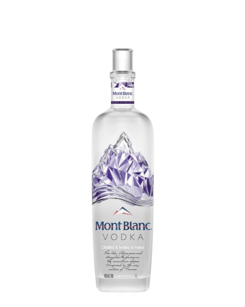 Quality region of Cognac France by generations old Artisans. Mont Blanc Vodka is created in France due to the country’s culinary history and to differentiate itself from other vodkas produced in Eastern Europe. The water used to produce the vodka came from natural springs in France, filtered through champagne limestone, and made with the Finest Grains from France.